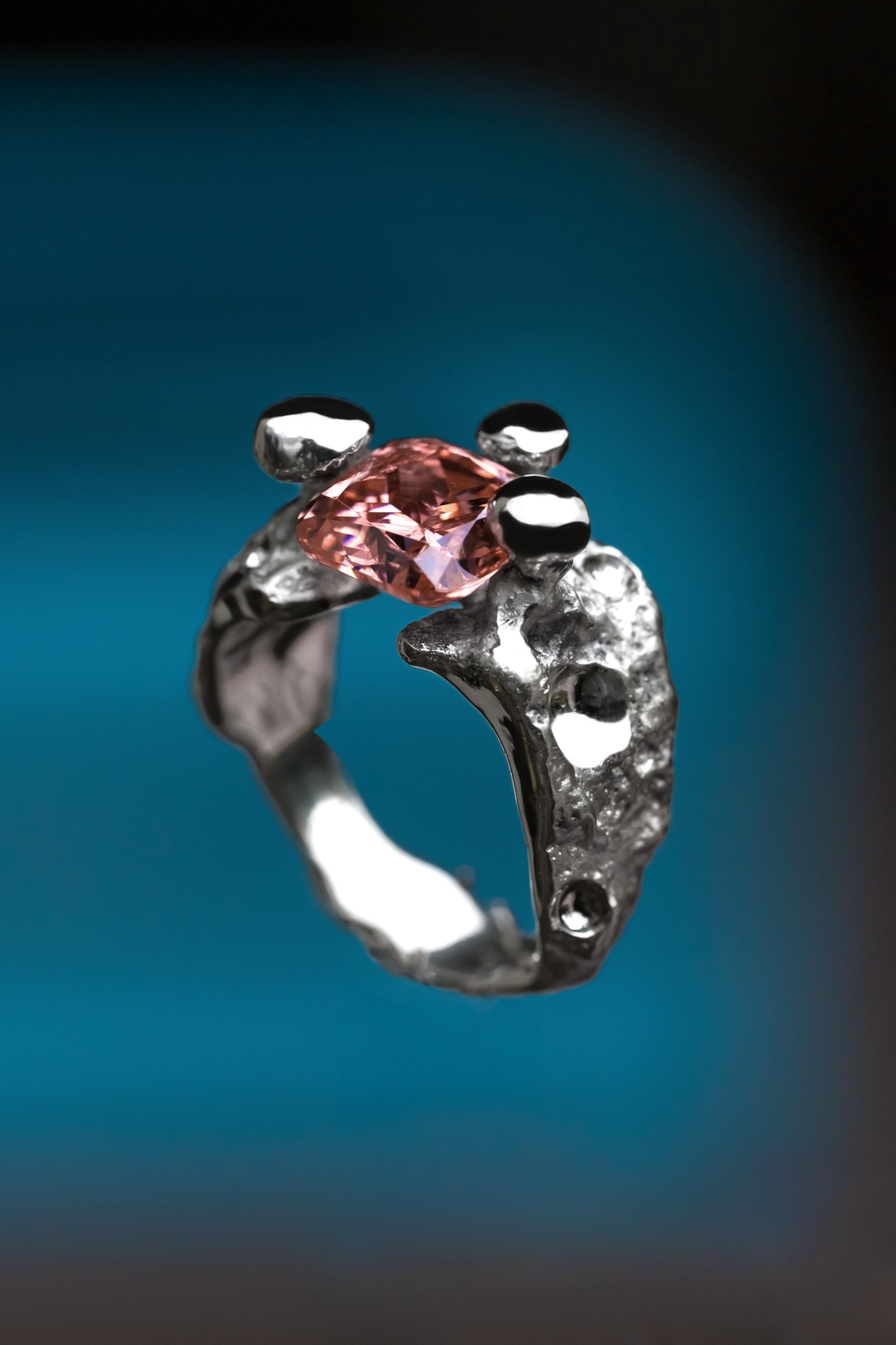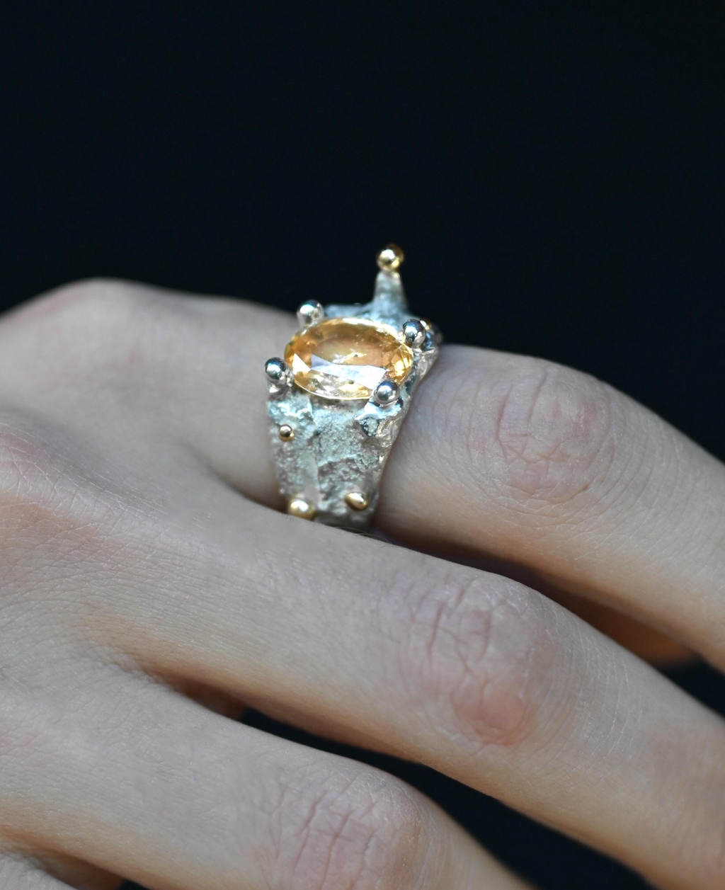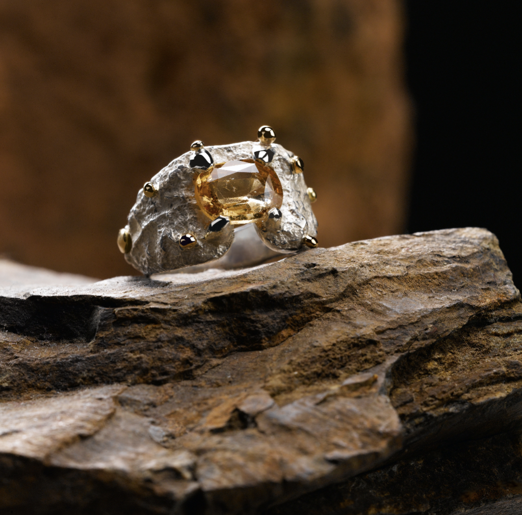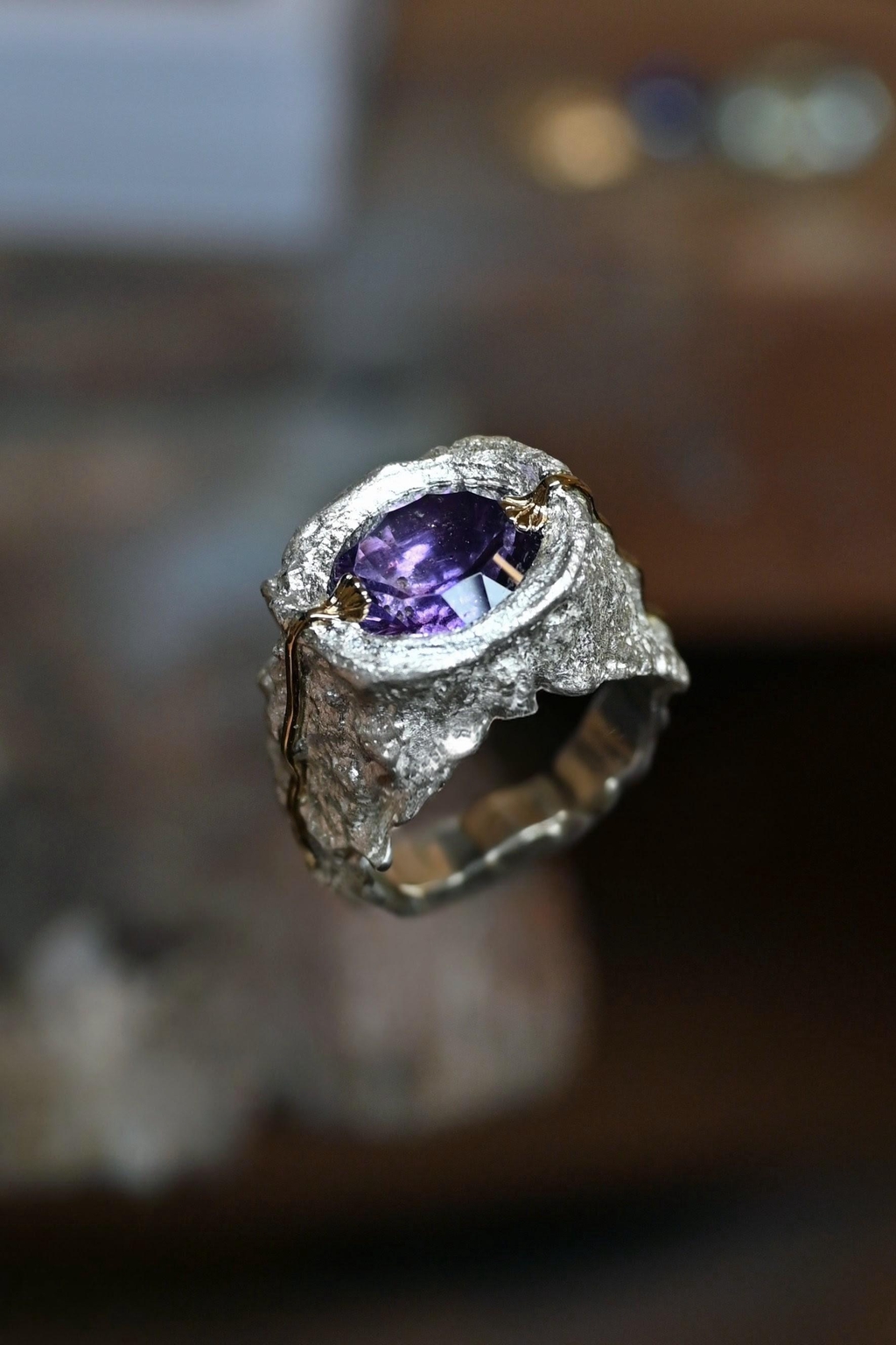 Le grain minéral et la rugosité maîtrisée, font partie intégrante de la pièce. La lumière accroche le relief, souligne la profondeur de la matière.